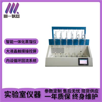 1、打开冷水循环开关,冷凝管开始进水,观察各接口是否漏水,若漏水需要重新密封连接。冷凝管的循环水加满后,水箱正常液位在黄线与红线之间。可以通过仪器正面右侧的水流计是否旋转来判断循环水是否正常运行。2.具体操作方式将蒸馏瓶内加入蒸馏水,上面通过中空的密封塞、软管与防倒吸装置密封连通,长臂口与冷凝瓶密封连通,冷凝瓶馏出液通过软管与接收瓶密封连通。2.1选择蒸馏实验打开总开关、辅开关,进入“预设菜单”界